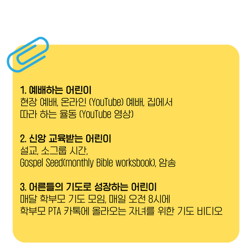 장소: 본당, 2세반 (114호) / 4세반 (115호)